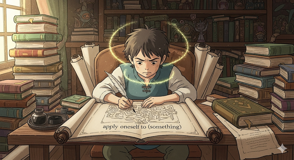 - 예문: He applied himself to studying for the entrance exam. (그는 입시 공부에 전념했다.)
