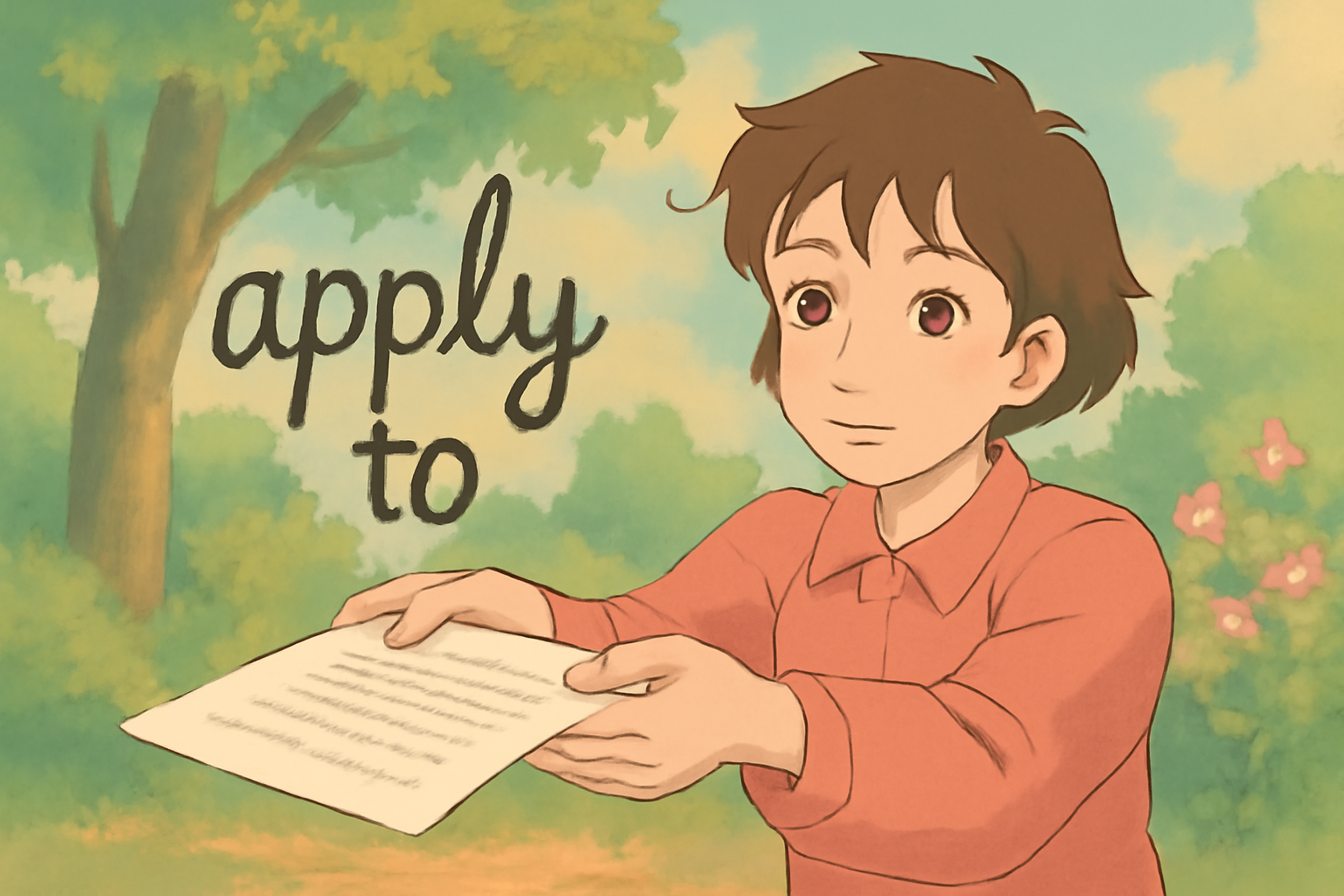 - 특히 "apply to"는 학교나 기관에 지원할 때, "apply for"는 장학금, 직위, 허가 등에 지원할 때 구분하여 사용합니다.