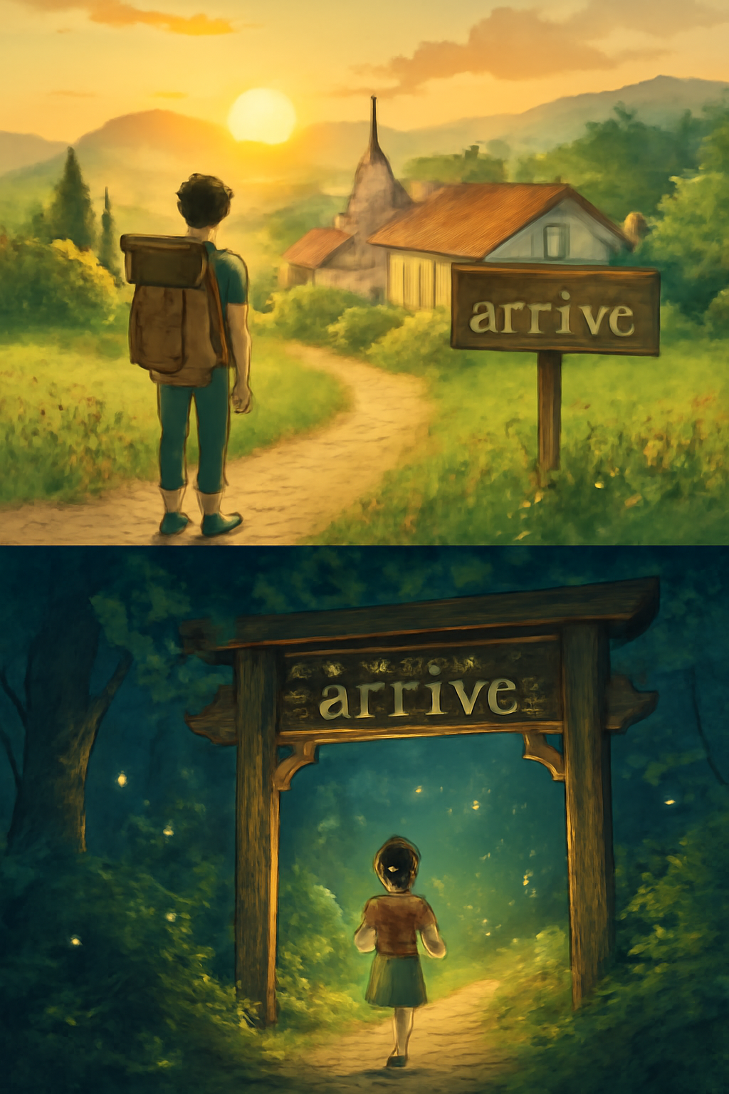 - *'arrive'**는 **'여정이나 시간의 흐름 끝에 최종 목적지나 특정 지점에 다다르는 것'**이라는 핵심 뉘앙스를 가집니다. 이는 물리적인 이동뿐만 아니라, 추상적인 사건이나 개념이 '생겨나거나 나타나는' 시점을 나타낼 때도 사용되며, 주로 '끝'이나 '완료'의 시점을 강조합니다.