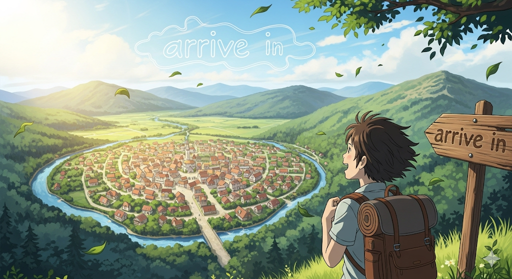 - *'arrive in'**은 지리적으로 넓은 지역에 도착하는 것을 표현할 때 사용됩니다.