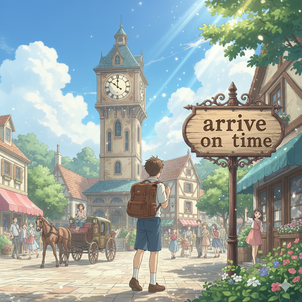 뉘앙스: 예정된 시간이나 기한에 맞춰 늦지 않게 도착하는 것을 의미합니다. 약속이나 일정을 정확하게 지키는 책임감과 신뢰의 뉘앙스를 담고 있습니다.