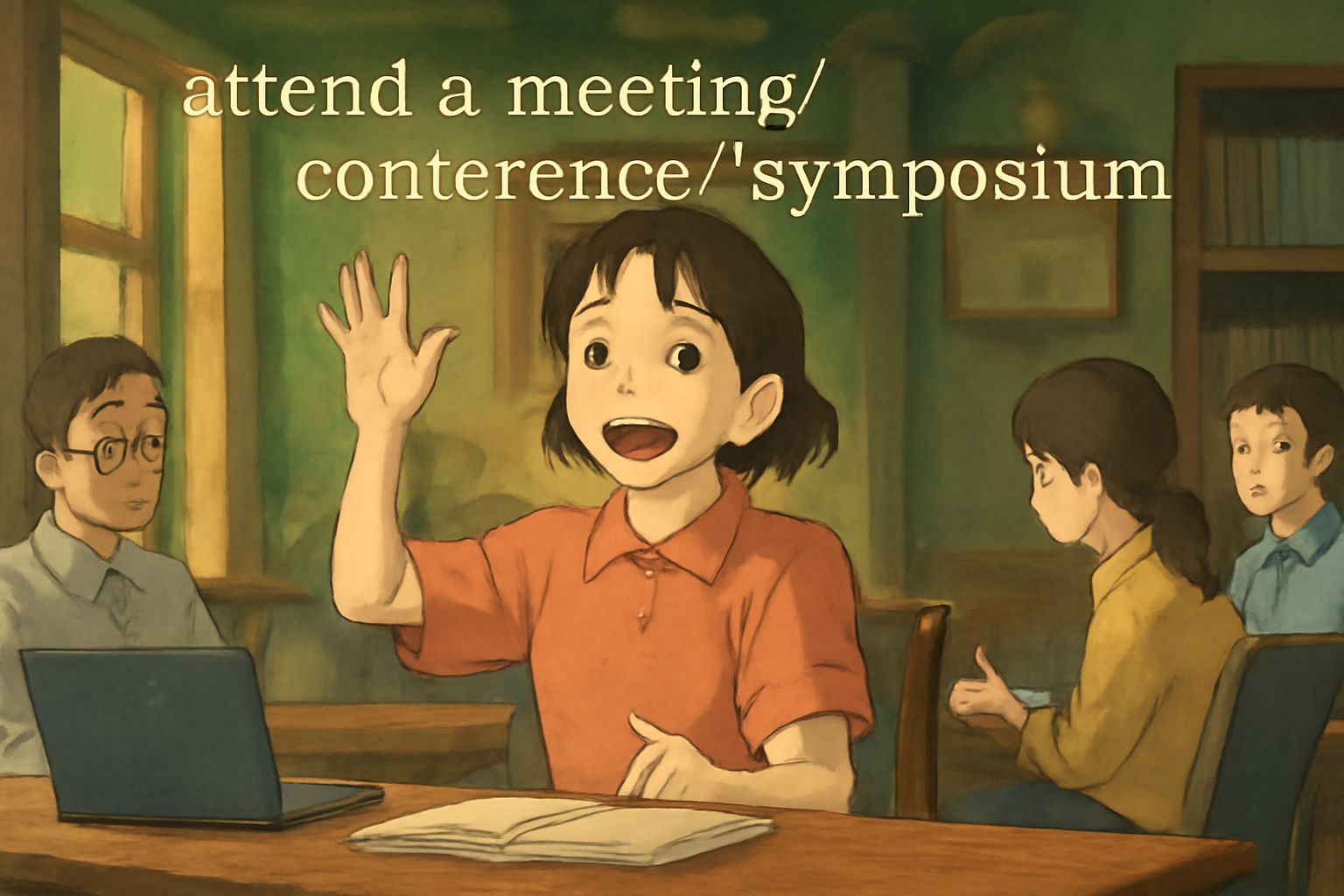 - 뜻: 회의/컨퍼런스/심포지엄에 참석하다