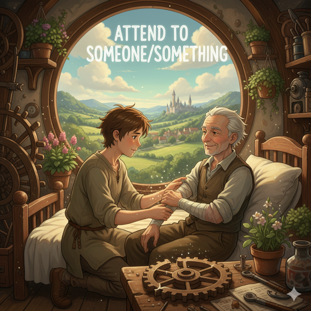 - *'attend to'**는 주의를 기울여 문제를 해결하거나 돌봐야 할 대상을 다루는 것을 나타내는 표현입니다.