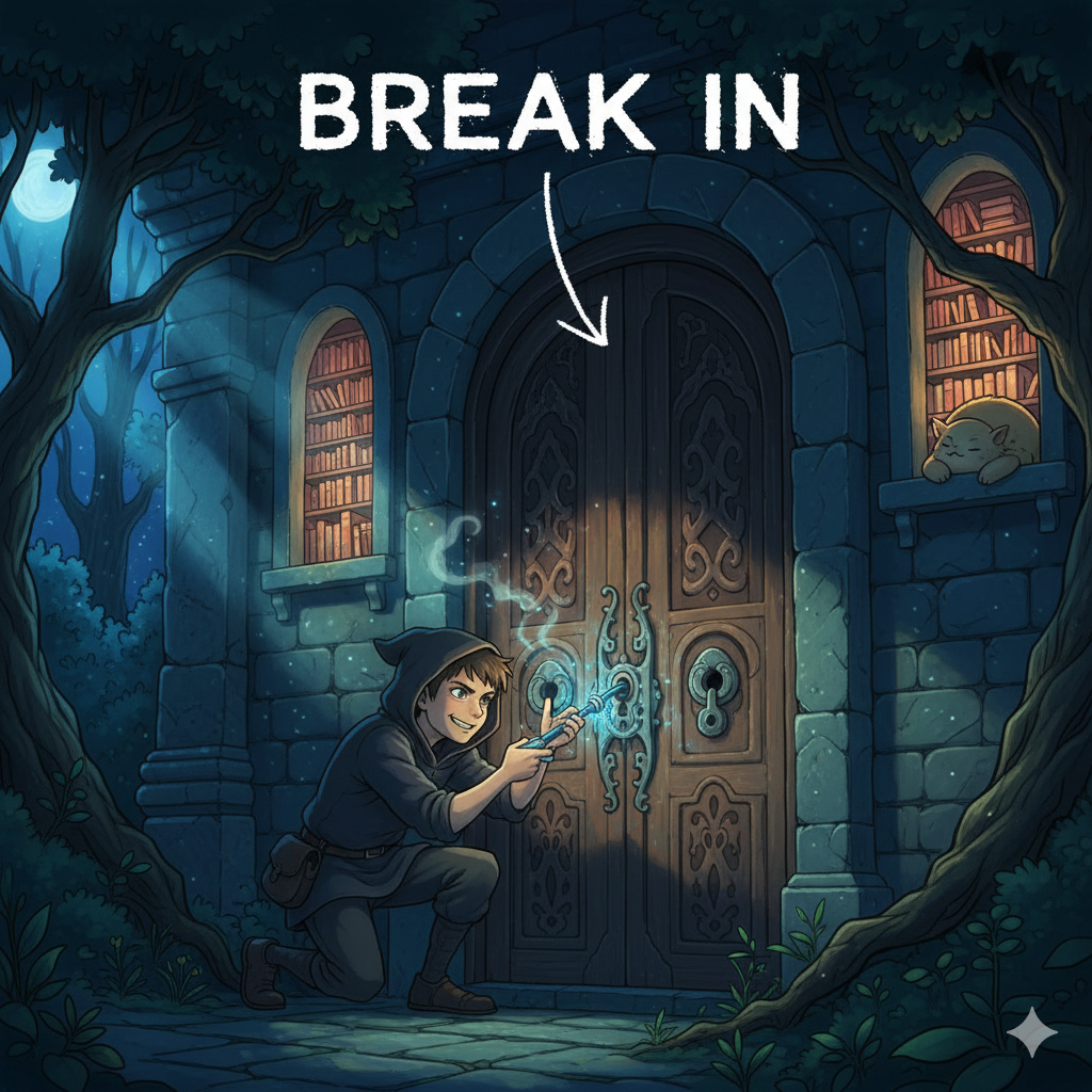 - 예문: Thieves broke into the bank’s safe last night. (도둑들이 지난밤 은행 금고를 털었다.)