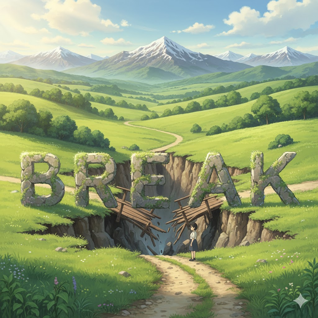 고대 영어 brecan ("깨뜨리다, 부수다, 찢다")에서 유래 → 게르만어 계통으로 '힘을 가해 분리하는 것'을 의미 → 원래 **'물리적인 힘으로 어떤 것을 파괴하거나 분리하는 것'**을 의미했음 → 이 의미가 현대 영어에서 '물리적으로 파괴하는 것' (부수다, 깨다) 동사로 발전함. 나아가, '규칙이나 약속을 위반하는 것' (어기다), '기계 등이 기능을 멈추는 것' (고장 나다), '습관이나 관계를 끝내는 것' (끊다, 깨다)으로 확장되었어요. 또한, 물리적/추상적인 '중단' (휴식하다)과 그로 인한 '결과물' (휴식, 틈)을 나타내는 명사로도 사용돼요. 즉, **'물리적/추상적으로 어떤 연속성을 파괴하거나 중단하는 다양한 행위와 그 결과'**를 나타내는 단어예요.
