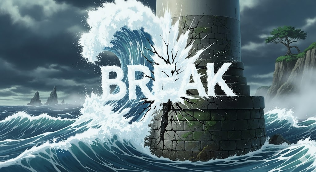 'break through'는 '장애물' (barrier), '난관' (difficulty), 또는 **'저항' (resistance)**을 '힘'(force)으로 **'돌파' (penetrating)**하거나 **'극복' (overcoming)**하는 행위를 의미합니다.