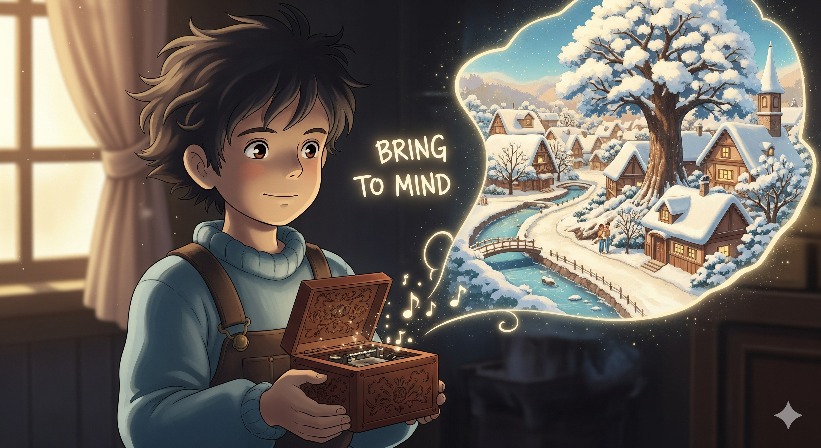 뉘앙스: 어떤 사물, 사람, 또는 상황이 과거의 기억이나 생각을 떠오르게 하는 것을 의미합니다.