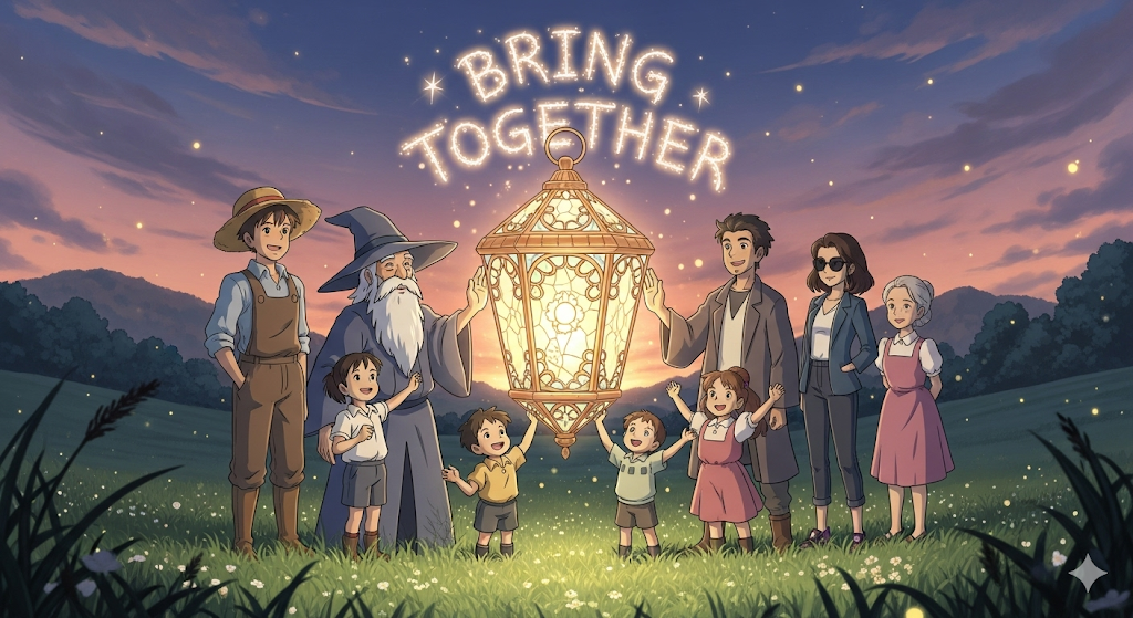 'bring together'는 '서로' **'분리'**되어 있던 '사람'이나 '사물'을 '하나'의 **'장소'**나 **'집단'**으로 **'연결'**하거나 **'통합'**하는 행위를 의미합니다.