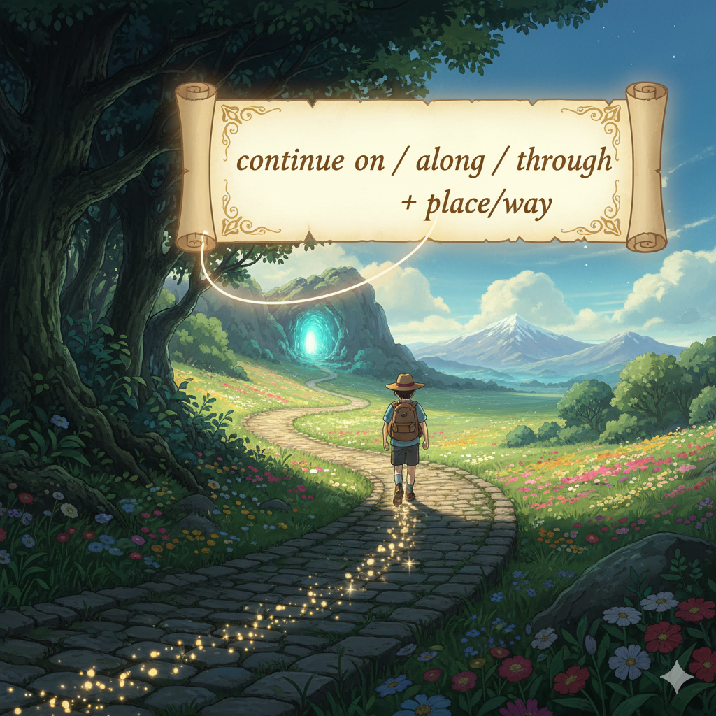 - continue on/along/through 구문은 방향, 위치와 관련된 독해 문제에 자주 등장
