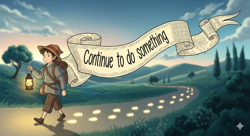 Day4 - continue , continue to + 동사원형 , continue doing (something) , continue with + 명사 , continue on/along/through + 장소/길 , continue as + 직책/역할 , continue to grow/improve/increase , continue uninterrupted , to be continued 본문