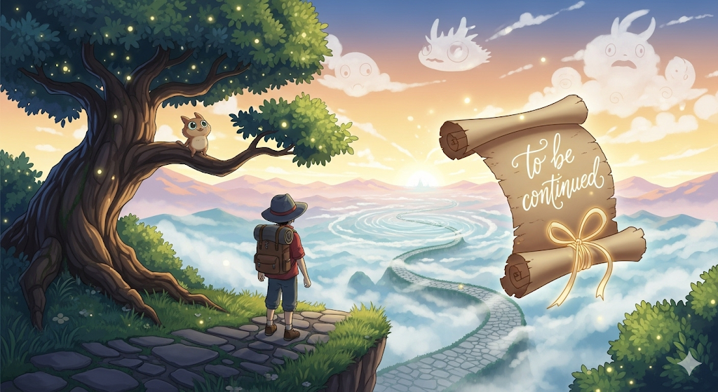 - *'to be continued'**는 서사적인 맥락에서 이야기가 다음 편으로 이어진다는 것을 알리는 정형화된 표현입니다.