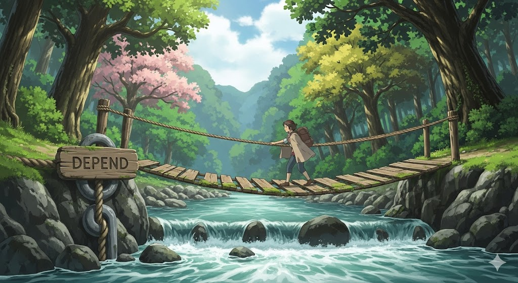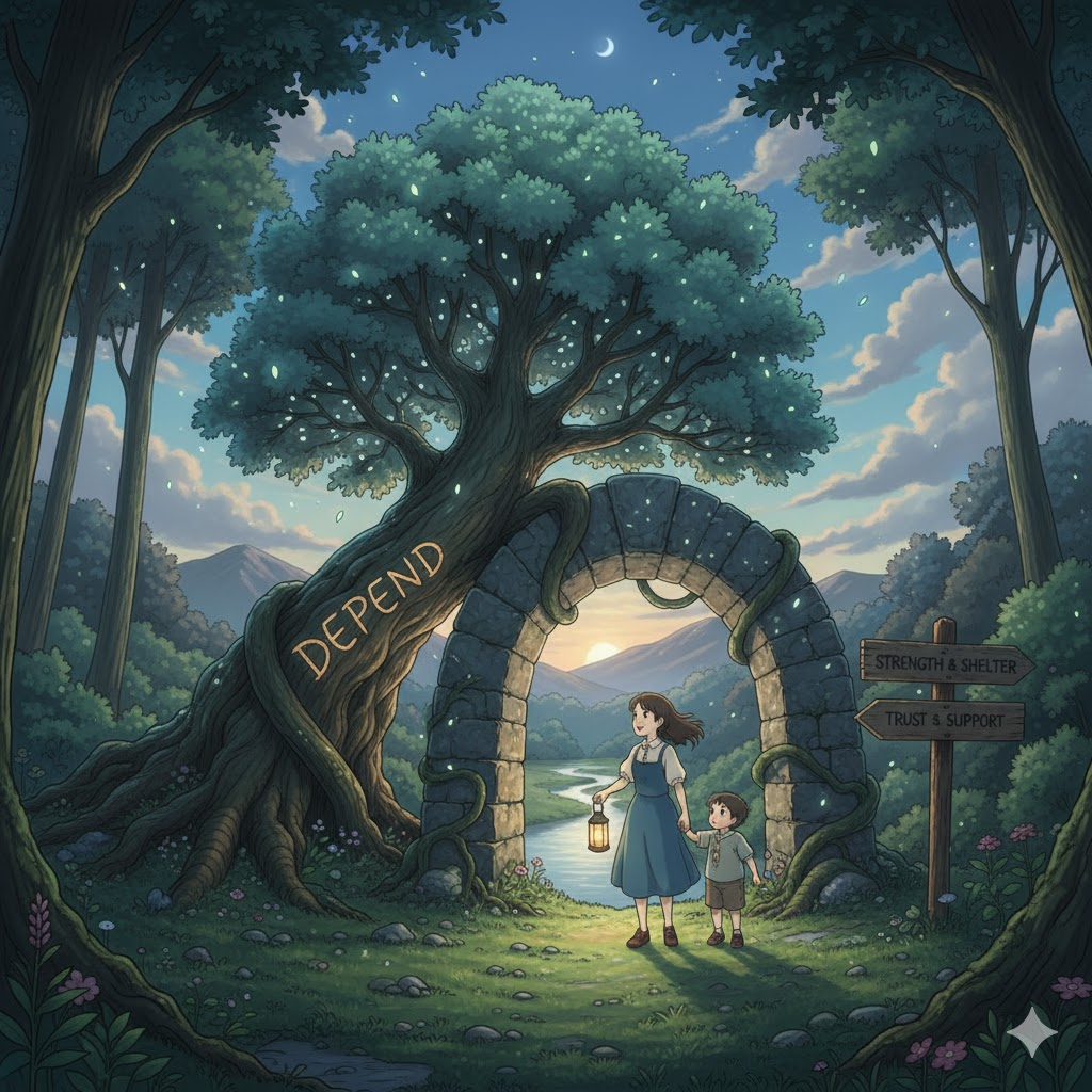 라틴어 dependere ("아래로 매달리다, ~에 달려 있다")에서 유래 → de- ("~에서 멀리, 아래로") + pendere ("매달다, 매달리다")의 결합과 관련 → 원래 **'어떤 것이 다른 것에 매달려 있는 것처럼 그 영향을 받는 것'**을 의미했음 → 이 의미가 현대 영어에서 '어떤 것의 결과나 상태가 다른 요인에 의해 결정되는 것' (달려 있다, ~에 좌우되다) 동사로 발전함. 나아가, '도움이나 지지를 위해 다른 사람이나 사물에 기대는 것' (의지하다, 신뢰하다)으로도 사용돼요. 즉, **'어떤 것이 다른 것의 영향을 받거나, 다른 것에 기대는 다양한 관계'**를 나타내는 단어예요.