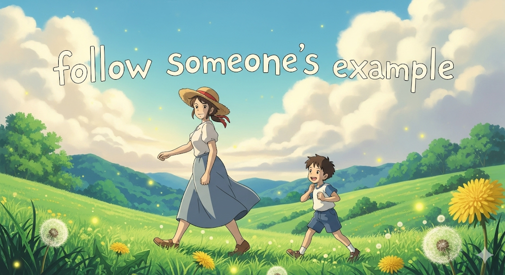 - *'follow someone’s example'**은 다른 사람의 좋은 행동이나 태도를 본받는 것을 나타내는 긍정적인 표현입니다.
