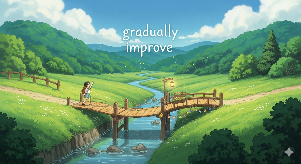 - *'gradually improve'**는 느리지만 확실한, 꾸준한 개선 과정을 나타낼 때 사용됩니다.