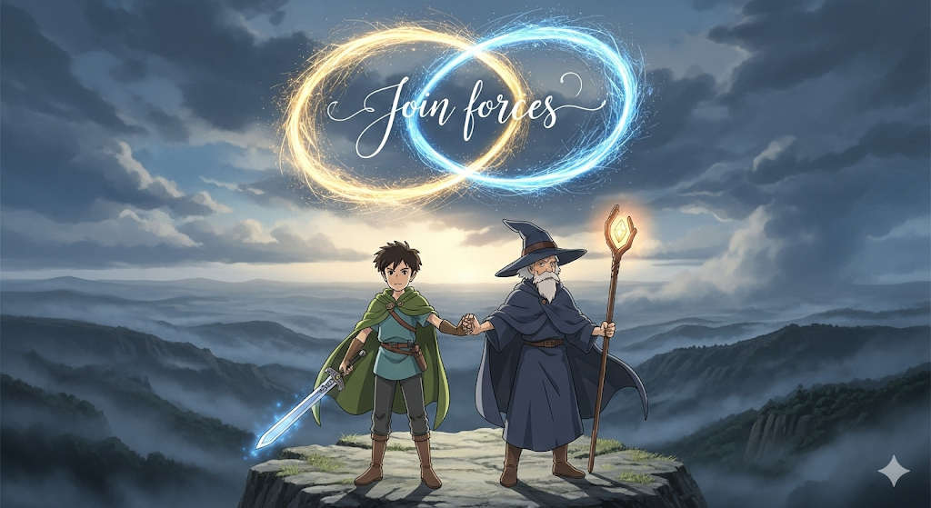 - 해석: (~와) 힘을 합치다, 협력하다