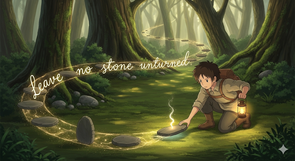 - *'leave no stone unturned'**는 어떤 일을 해내기 위한 철저하고 광범위한 노력을 강조하는 표현입니다.