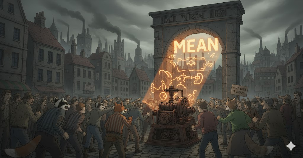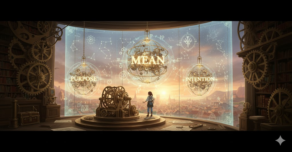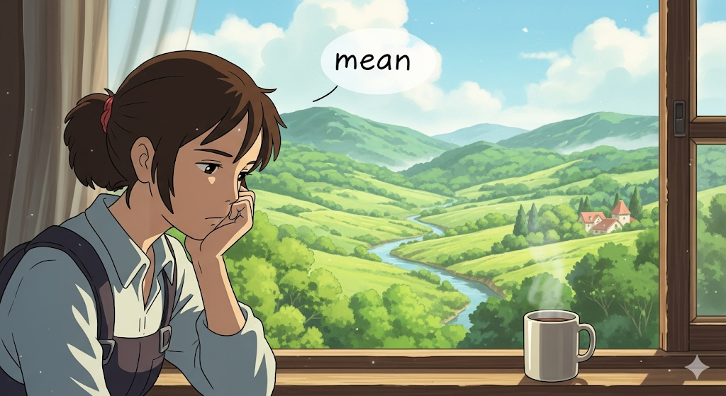 고대 영어 mænan ("의미하다, 나타내다, 의도하다")에서 유래 → 게르만 조어 mainijan ("의미를 전달하다")와 관련 → 원래 **'생각이나 개념을 표현하거나, 어떤 목적을 가지는 것'**을 의미했음 → 이 의미가 현대 영어에서 '단어 등이 나타내는 바를 전달하는' (의미하다) 동사로 발전함. 나아가 '어떤 행동을 하려는 목적을 가지는' (의도하다, ~할 작정이다) 의미로 확장되었고, '특정 결과를 가져오는' (~을 초래하다, ~을 야기하다) 의미도 가지게 되었어요. 형용사로서는 '잔인하거나 불친절한' (비열한) 의미와 '일반적인 수준의' (평균의, 중간의) 의미를 가지며, 명사로는 '통계적 중간값' (평균, 중간)을 나타내요. 즉, **'생각을 전달하거나, 목적을 가지거나, 결과를 유발하거나, 특정한 성격이나 수준을 나타내는 다양한 개념'**을 포괄하는 단어예요.