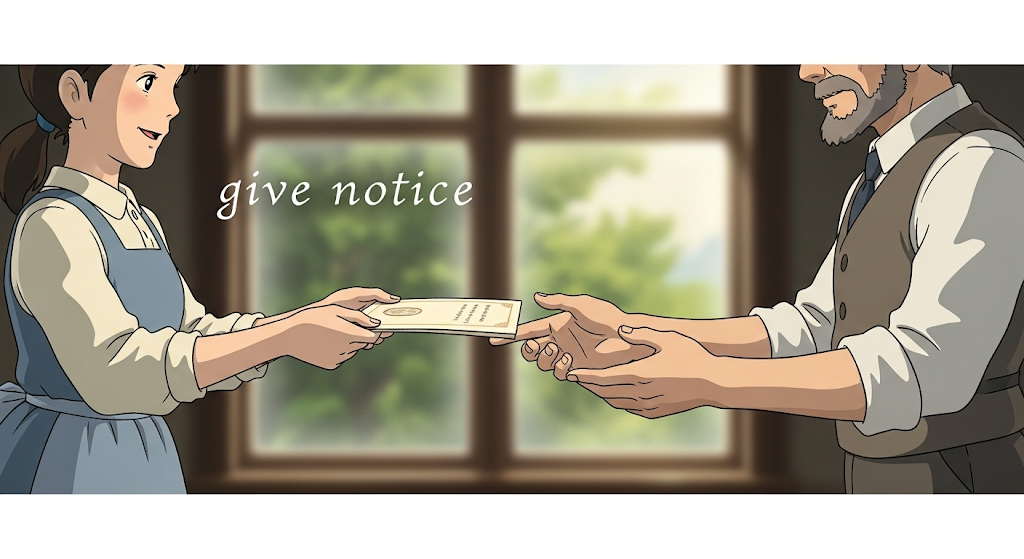 - 예문: After five years, she decided to give notice to her employer.
