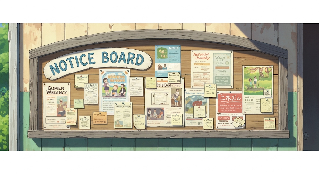 - *'notice board'**는 공지사항을 공유하는 일반적인 물리적 또는 온라인 공간을 의미합니다.