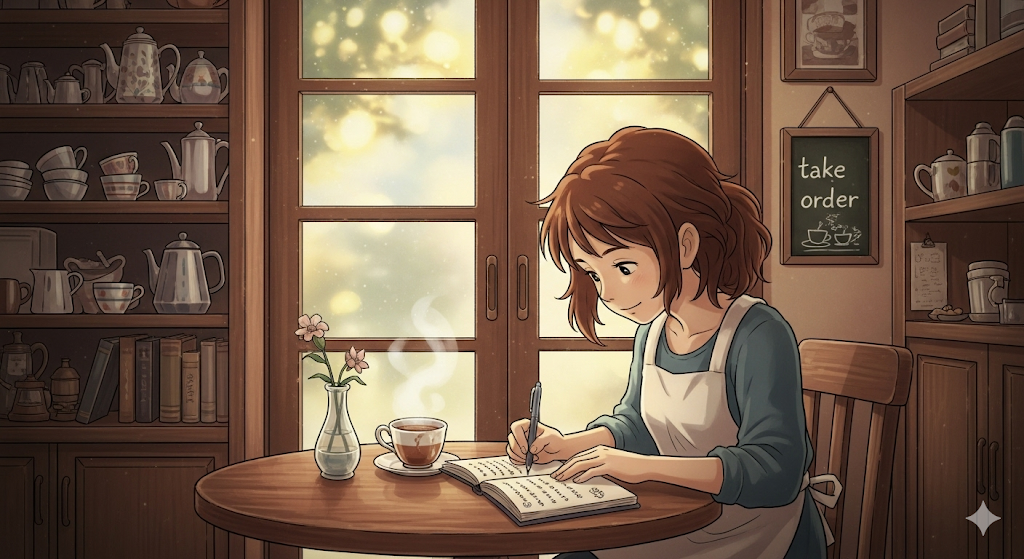 - (웨이터가 테이블에서 주문을 받고 있다.)