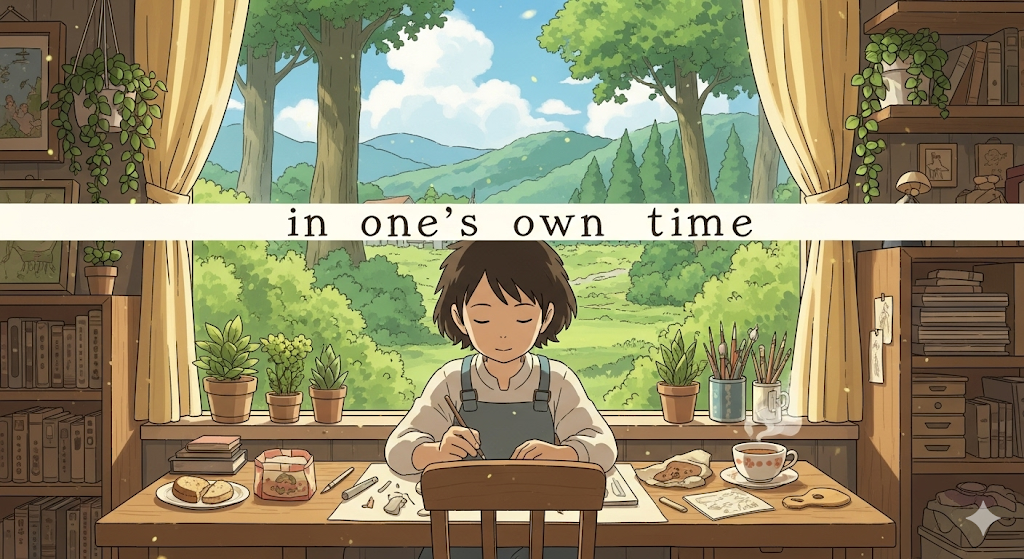 - *'in one’s own time'**은 상대방에게 여유를 주거나 스스로의 속도에 맞춰야 함을 나타낼 때 사용됩니다.