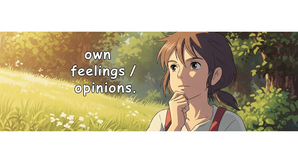 - *'own feelings/opinions'**은 자신만의 독자적인 생각과 감정을 표현할 때 사용됩니다.
