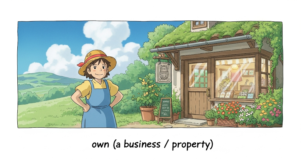 - (동사) 소유하다, 가지고 있다: 어떤 것을 법적으로나 사실적으로 자기 것으로 가지고 있다.
