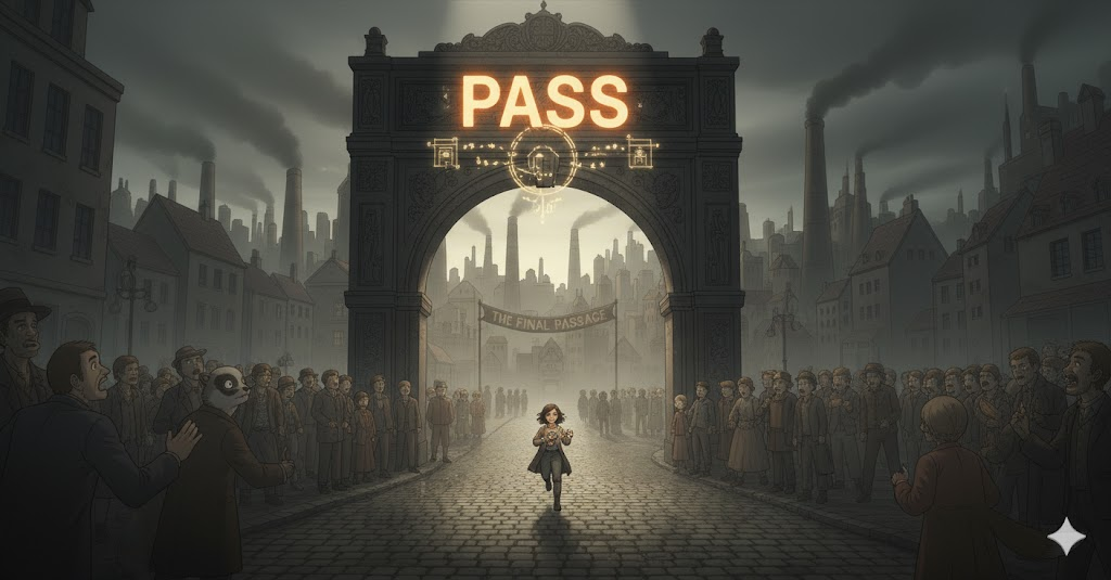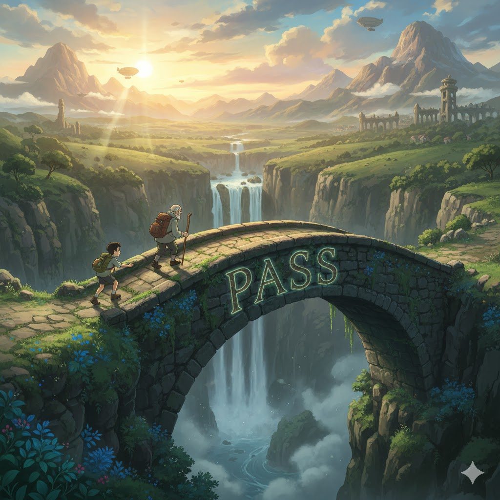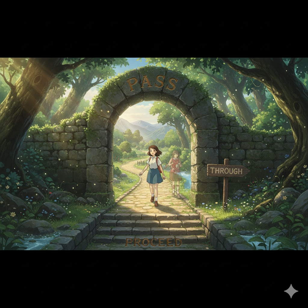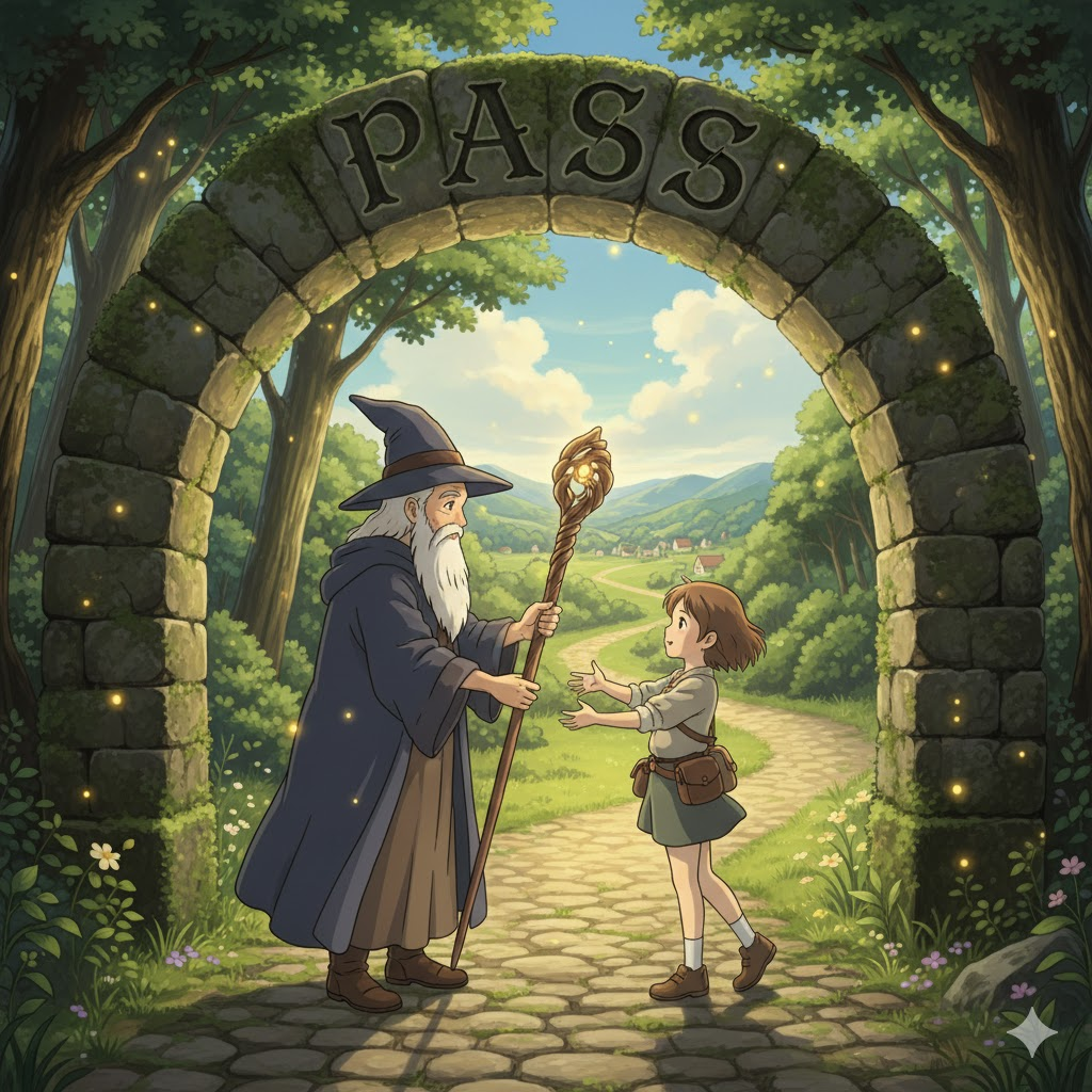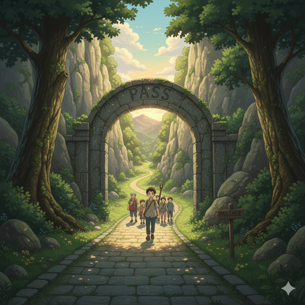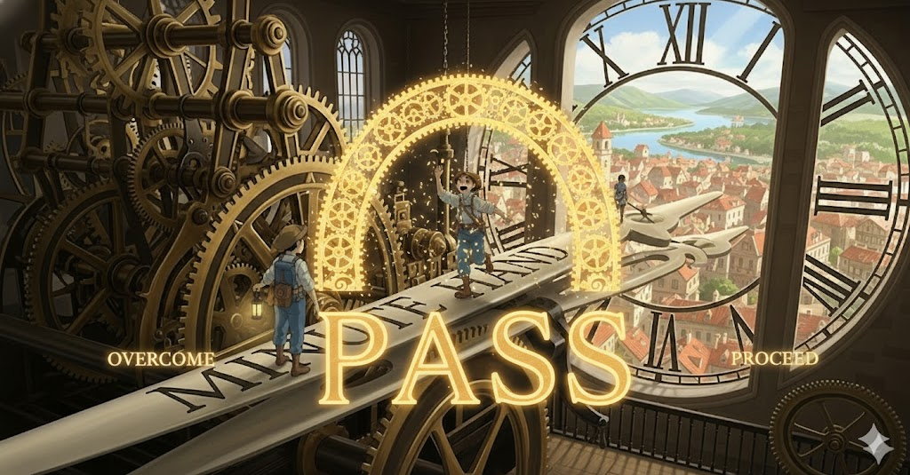 '특정' 지점(point), 시간(time), 또는 '수준'(level)을 '넘어서' '나아가는' 행위를 의미합니다. '시험'(exam)이나 '심사'를 '통과'하는 것, '법률'(law)이 '의회'를 '통과'하는 것, 또는 '사망'(death)하는 것을 완곡하게 나타내는 데도 사용됩니다. 핵심은 경계나 단계를 넘어서는 것입니다.