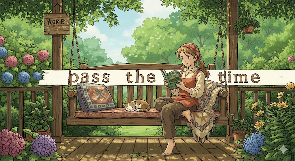 - *'pass the time'**은 특히 지루하거나 기다려야 하는 상황에서 시간을 보낼 때 사용되는 표현입니다.