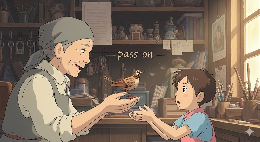 | pass | 건네주다 | 동사로, '정보' '나' '물건' '을' '이동시키는' '행위'. | on과 결합하여 '단순히' '주는' '것이' '아닌' '자신' '을' '통해' '다음' '사람' '에게' '계속' '이어지도록' '전달한다' '는' '의미' '를' '형성함'. |