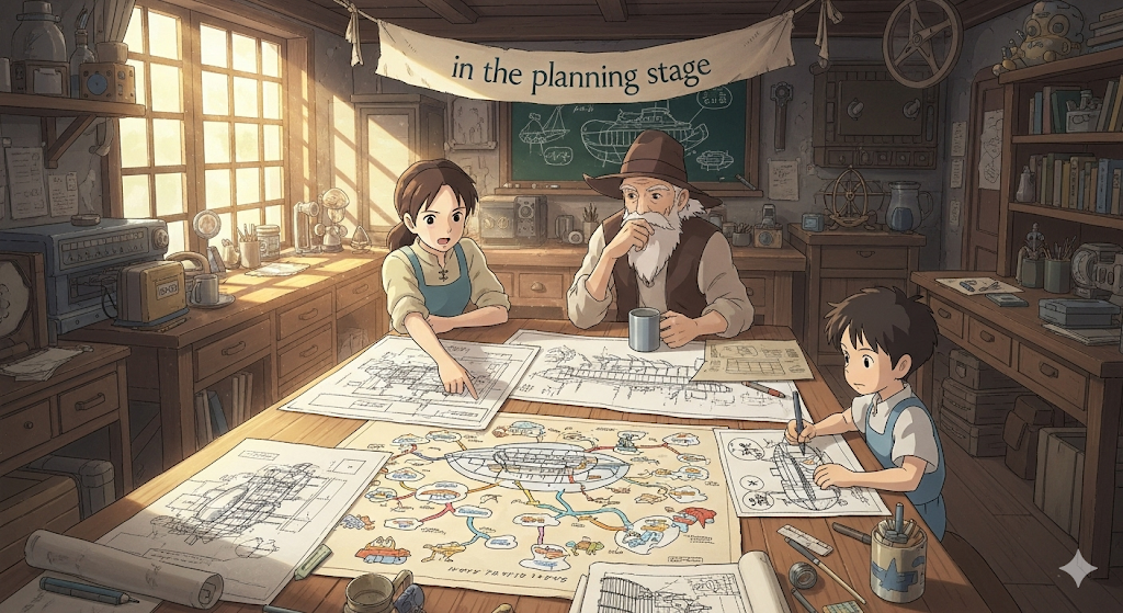뉘앙스: 'in the planning stage'는 "어떤 프로젝트나 일이 아직 실행되지 않고, 아이디어를 구체화하는 초기 단계에 있다"는 것을 의미해요. 아직 시작되지 않았고, 앞으로 많은 준비가 필요하다는 뉘앙스를 담고 있어요.