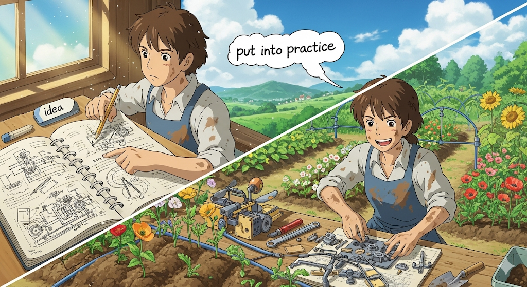 - 해석: 실행에 옮기다, 실제로 적용하다
