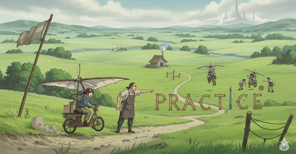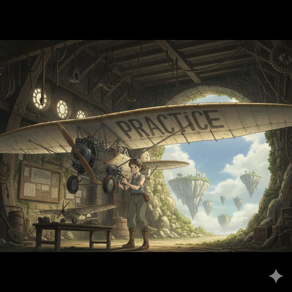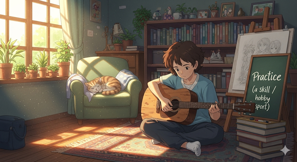 '기술'(skill)이나 '능력'(ability)을 '향상'(improvement)시키거나 **'숙련'**시키기 위해, '반복적'으로 '수행'하는 행위를 의미합니다. '학문'(academic)이나 '직업'(profession)에서의 '실무'(hands-on) 경험(experience)이나 '관행'(custom)을 뜻하기도 합니다. 핵심은 반복을 통한 숙달입니다.
