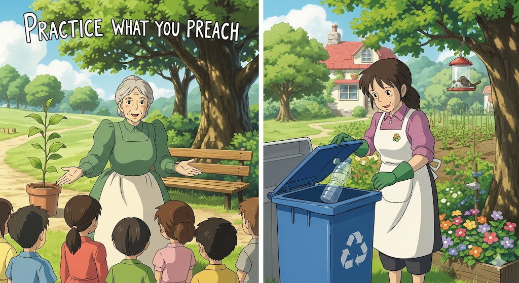 - *'practice what you preach'**는 언행일치를 강조하는 속담적인 표현입니다.