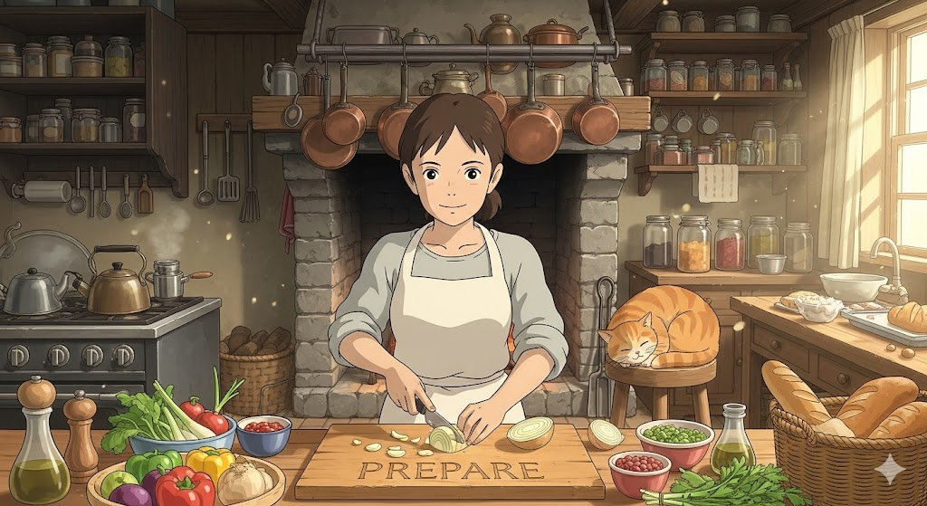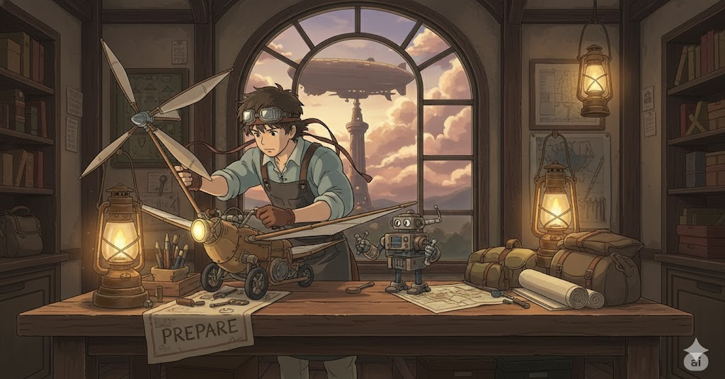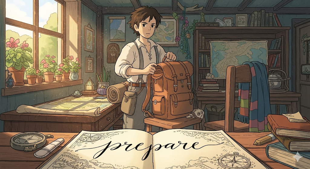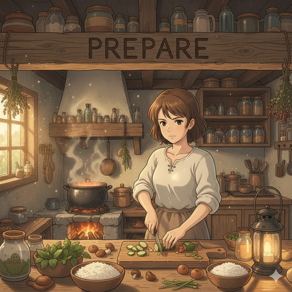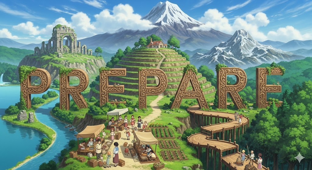 '미래'(future)의 '특정한' '상황'(situation), '사건'(event), 또는 '활동'을 '대비'하거나, '성공적'으로 '수행'하기 위해, '필요한' '조치'(action)나 '물품'(item)을 '미리', '갖추는' 행위를 의미합니다. 이는 '계획'(plan), '준비'(preparation), 또는 '훈련'(training) 등 '사전적인' '노력'(effort)에 초점이 맞춰져 있습니다.