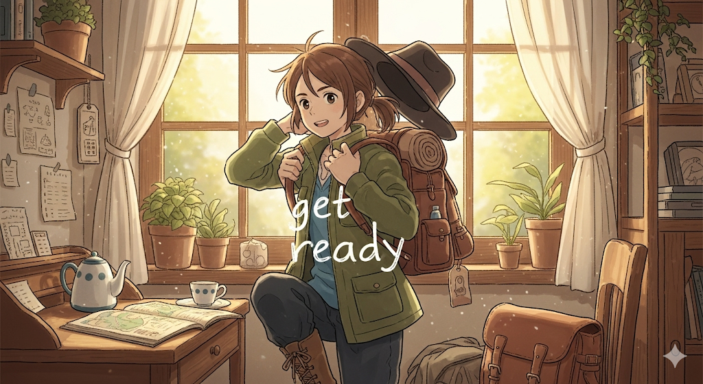'get ready'는 "무언가를 시작하거나 떠나기 위해 몸이나 마음, 또는 물건을 준비하는 것"을 말해요. 'prepare'보다 더 가볍고 일상적인 느낌으로, 외출 준비나 간단한 활동을 위해 채비할 때 자주 사용됩니다.
