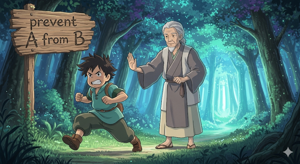 - 해석: 누군가가 ~하는 것을 막다