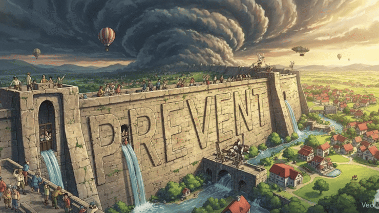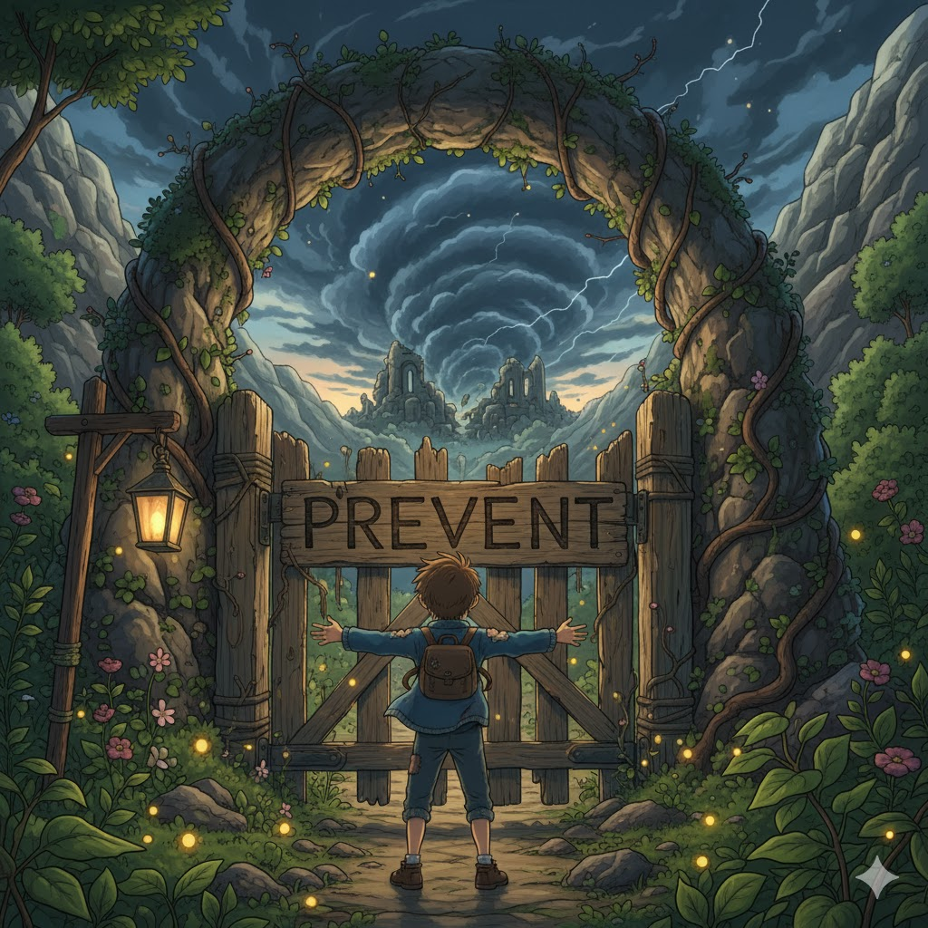 라틴어 praevenire ("앞서 가다, 예방하다")에서 유래 → prae- ("앞에") + venire ("오다")의 결합 → 원래 **'무엇인가가 일어나기 전에 미리 가는 것'**을 의미했음 → 이 의미가 현대 영어에서 '어떤 일이 발생하기 전에 미리 조치를 취하여 그것이 일어나지 않도록 하는' (막다, 방지하다) 동사로 발전함. 나아가 '특히 좋지 않은 일에 대해 미리 조치를 취하여 발생을 막는' (예방하다) 의미로 확장되었어요. 즉, **'원치 않는 일이 발생하거나 어떤 행동이 실행되는 것을 미리 가로막는 행위'**를 나타내는 핵심 단어예요.