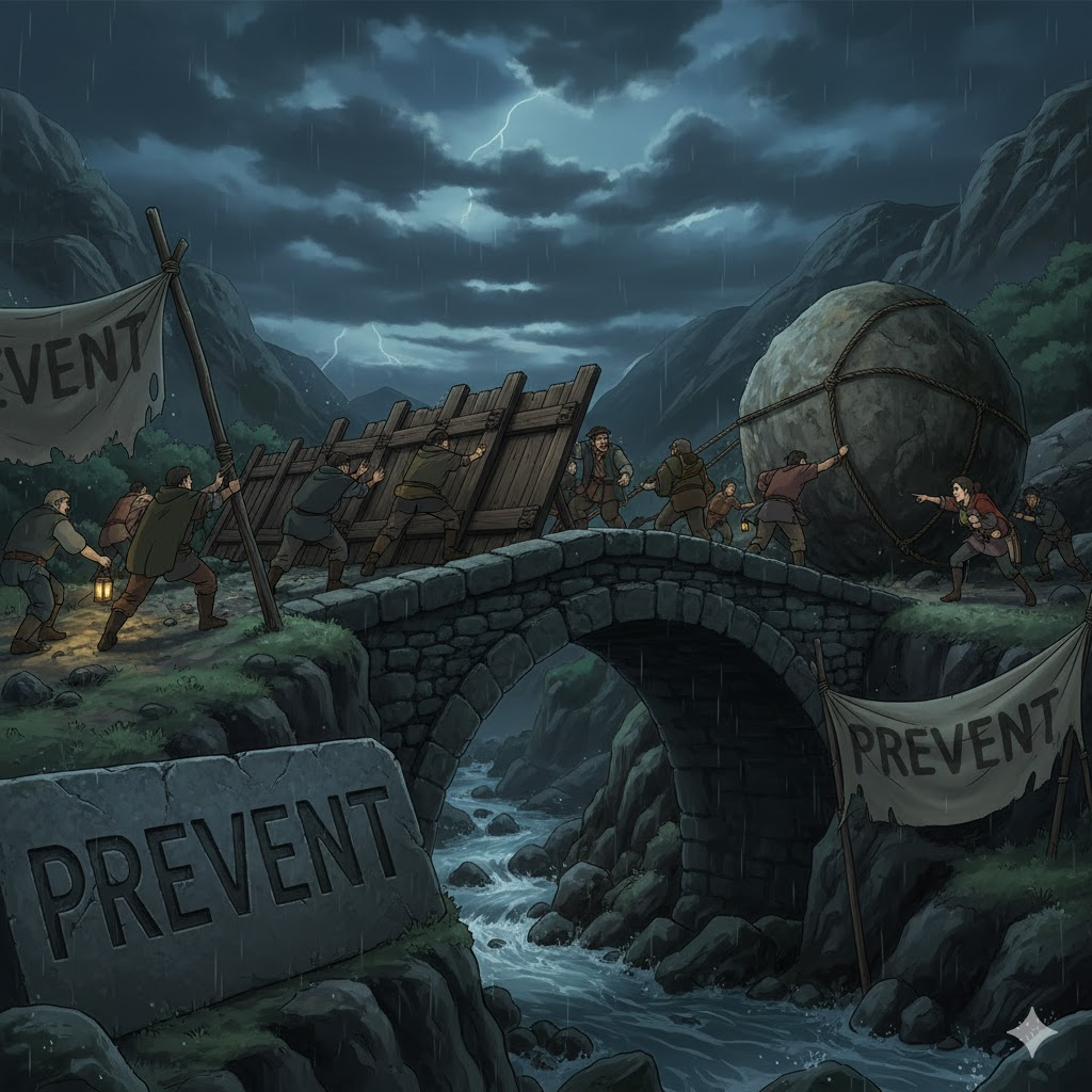 '불가피한' '결과'가 아닌, '부주의'(carelessness) 또는 '안전'(safety) 규약'(protocol) 부족'으로 인해 '발생'할 수 있는 '사고'(accident)를 '미리', '막는' 행위를 의미합니다. 이는 '안전 확보'를 위한 '예방적인' '조치'(measure)에 초점이 맞춰져 있습니다.