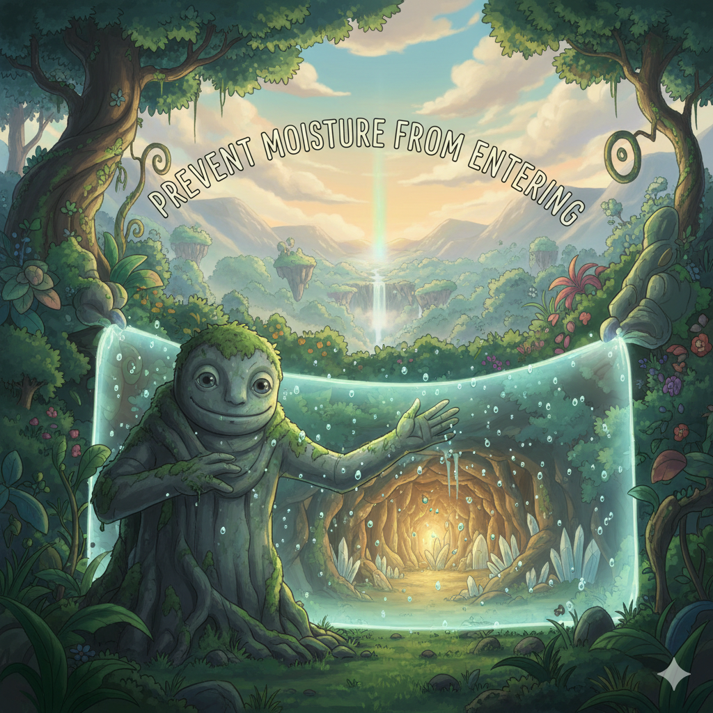 prevent moisture from entering [prɪˈvent ˈmɔɪstʃər frəm ˈentərɪŋ]