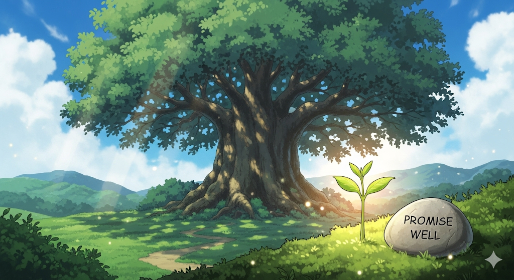'말'(words)이나 '행동'(action)을 통해, '미래'(future)에 '특정' '일'을 '반드시', 혹은 '확실'하게 '수행'할 것임을 '보장'하는 행위를 의미합니다. 이는 '개인의' '의지'(will), '신뢰'(trust), 그리고 '성실성'(honesty)을 '바탕'으로 하는 '서약'(vow)에 초점이 맞춰져 있습니다. **'가망'**이나 '기대'(expectation)를 뜻하는 비유적인 의미로도 사용됩니다.