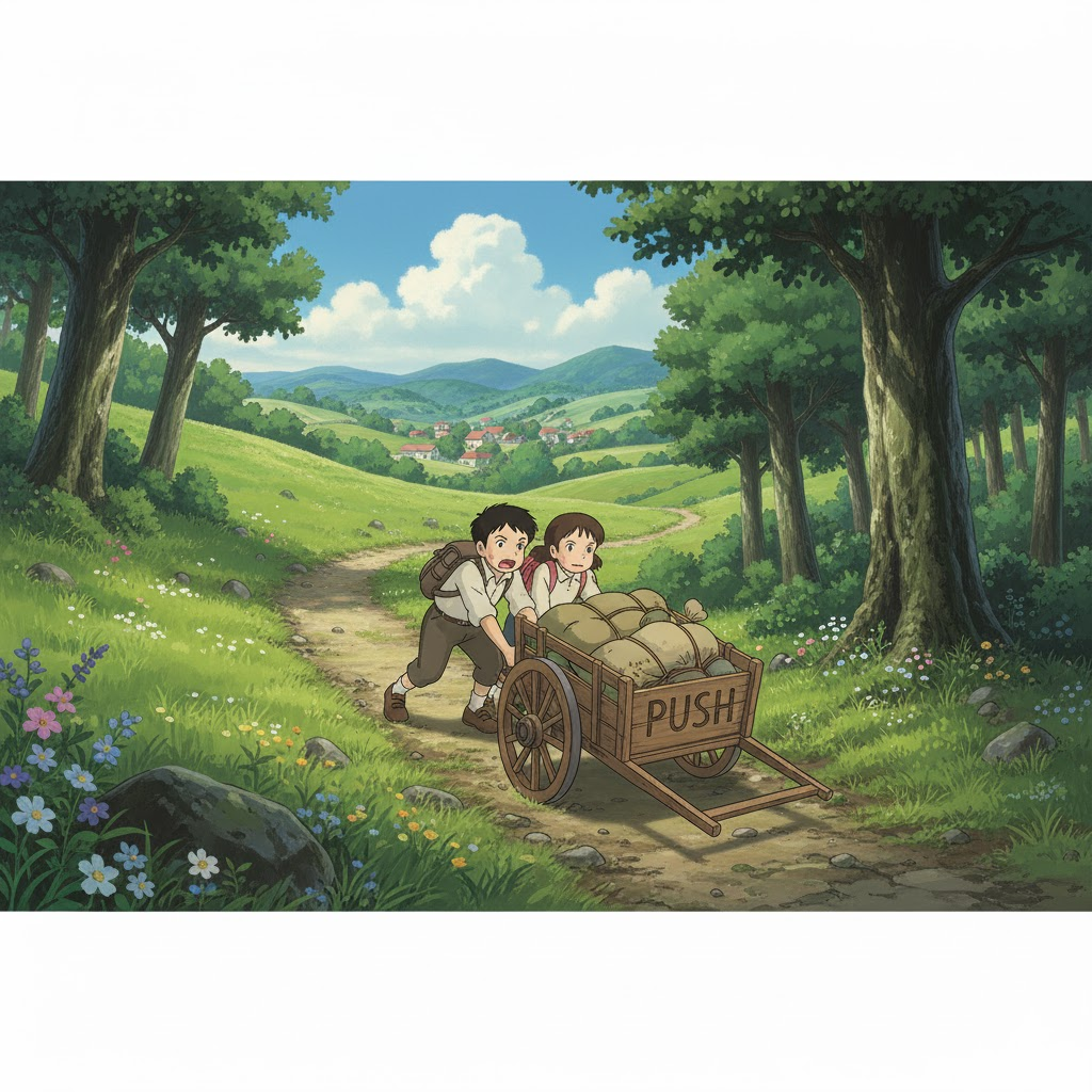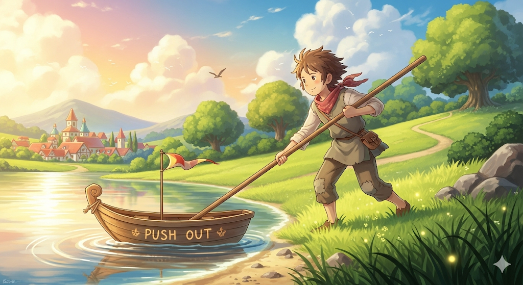 힘(force)을 사용하여 물체를 '자신'에게서 '멀리' '밀어내는' 행위를 의미합니다. 물리적인 밀기 외에도, 계획(plan)을 **'추진'**하거나, 사람을 '강요' 또는 '압박'(pressure)하는 비유적인 의미로도 사용됩니다. 핵심은 앞으로 나아가도록 힘을 가하는 것입니다.