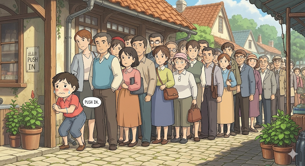 - (그녀는 슈퍼마켓 줄에 새치기했다.)