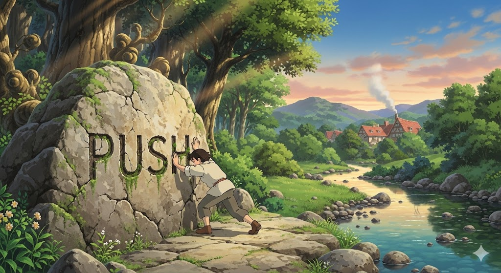 - He had to push the heavy door to open it. (그는 무거운 문을 밀어서 열어야 했다.)