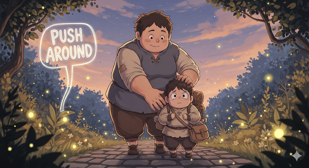 'push around'는 "다른 사람을 이리저리 '밀어붙이듯' 함부로 대하거나 자신의 뜻대로 조종하는 것"을 의미해요. 힘이 센 사람이 약한 사람에게 함부로 하는 부정적인 뉘앙스를 담고 있습니다.