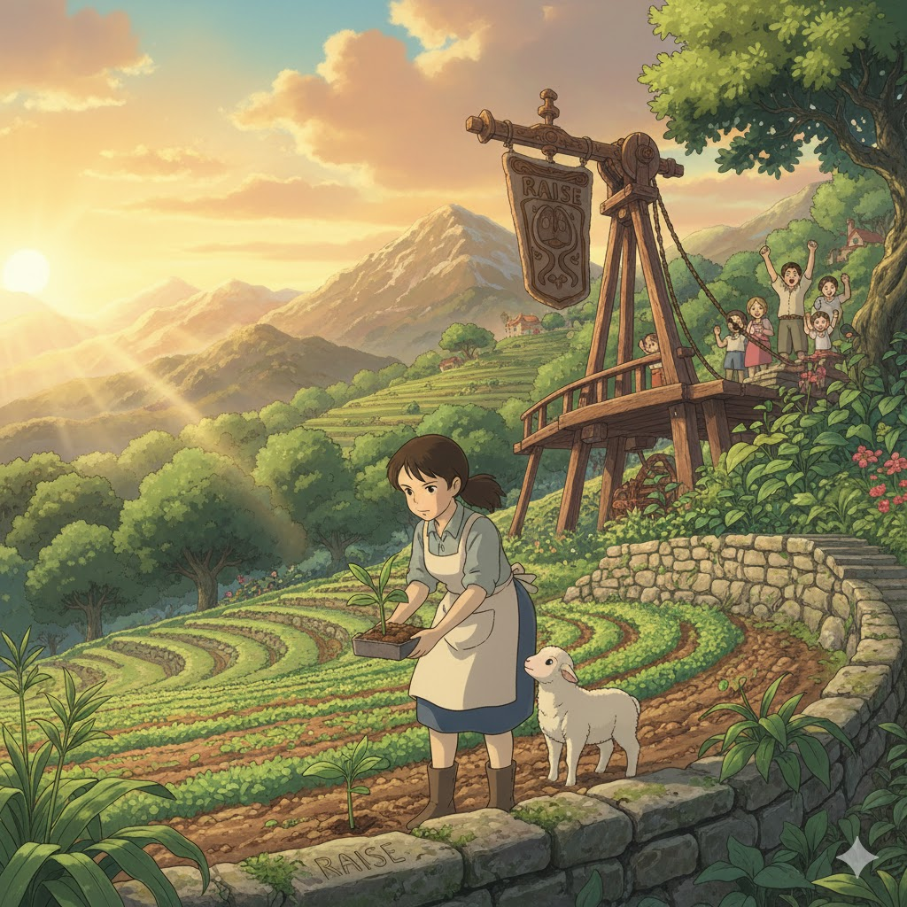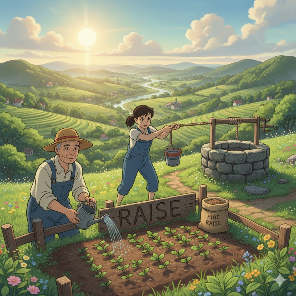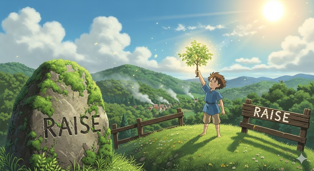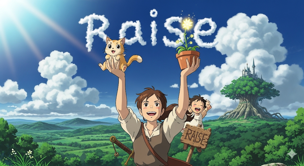 raise [reɪz] 위로 올리는 동작, 아이·동물을 키우는 의미도 있음