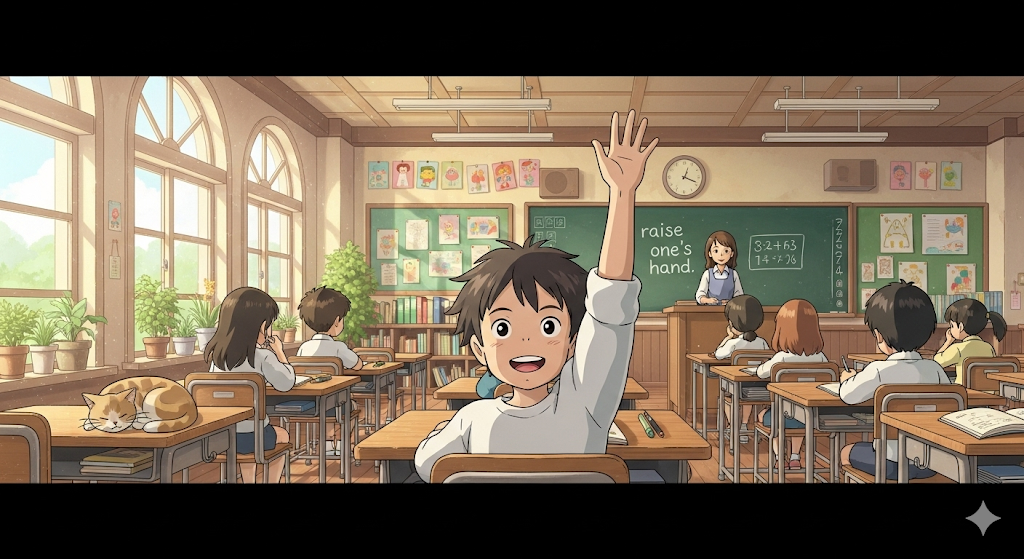 - She raised her hand to ask a question in class. (그녀는 수업에서 질문하기 위해 손을 들었다.)