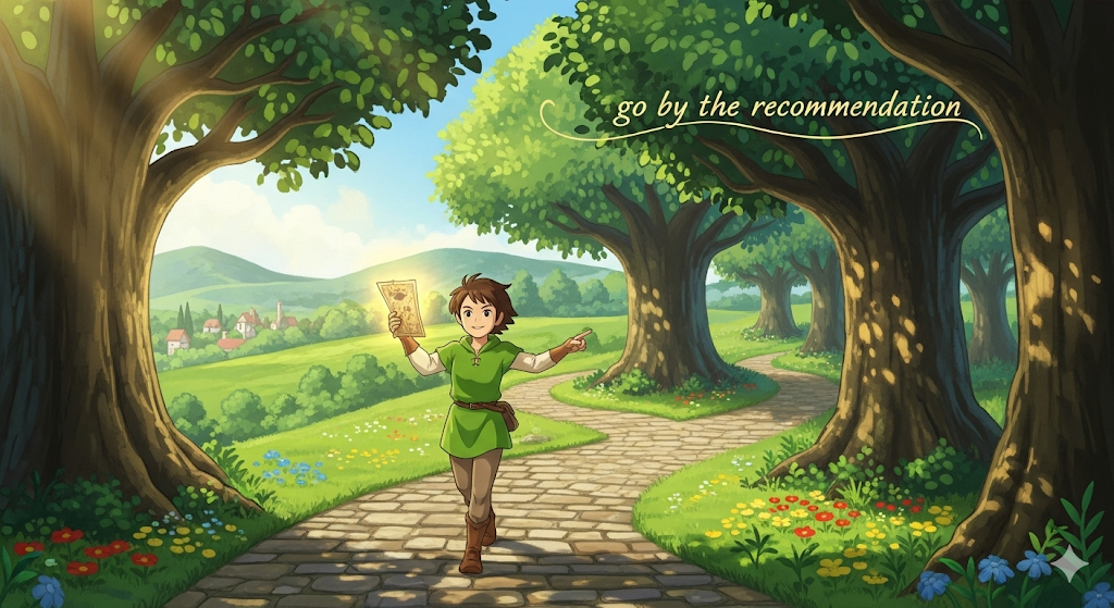 'go by the recommendation'은 자신의 판단보다 다른 사람의 신뢰성 있는 조언을 기준으로 삼아 행동하는 것을 의미합니다.