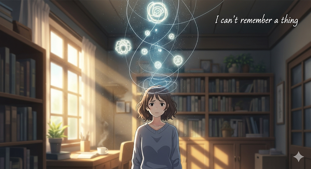 'can't remember a thing'은 어떤 사건이나 정보에 대한 기억이 완전히 상실되었음을 강조하는 구어체 표현입니다.