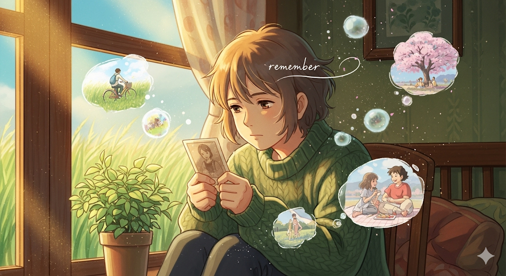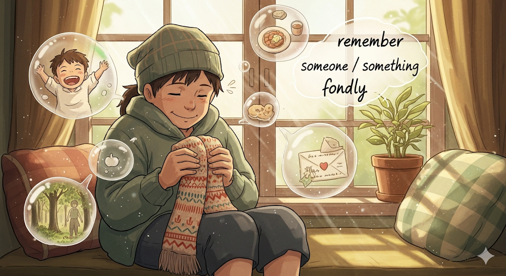 특정 사람이나 과거 사건을 회상할 때, 따뜻하고, 애정 어린, 혹은 긍정적인 감정을 느끼며 기억하는 행위를 의미합니다. 이는 기억과 결부된 정서적인 태도를 강조하며, 그리움이나 애착을 나타냅니다.